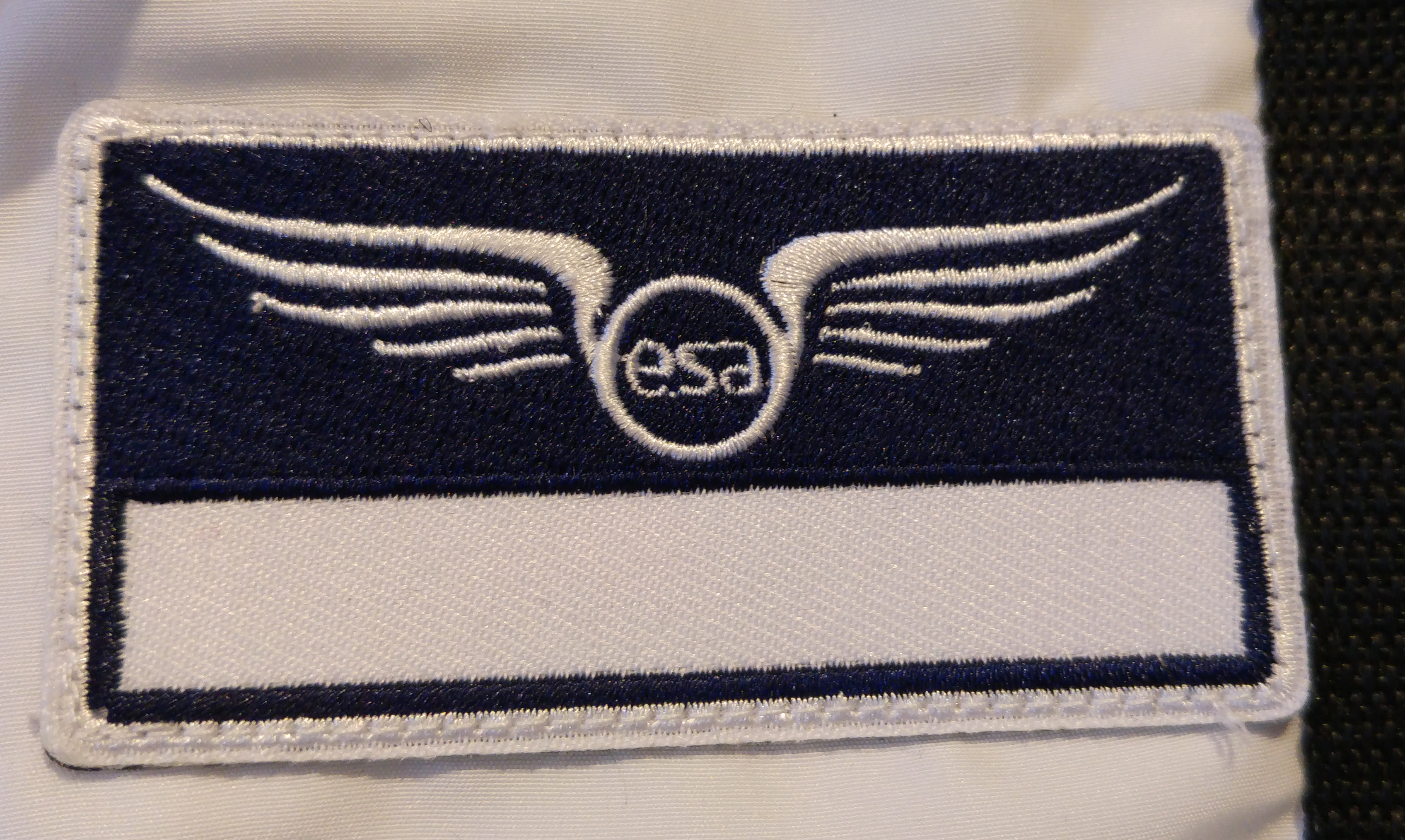 Le déguisement est composé d'une combinaison, ornée de 2 logos officiels de l'ESA : les drapeaux et le centre d'entraînement.